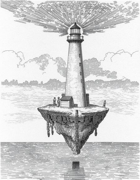 - Seed:595570113703445 8steps A detailed drawing, a lighthouse on a floating island, its beam creating portals to other dimensions.