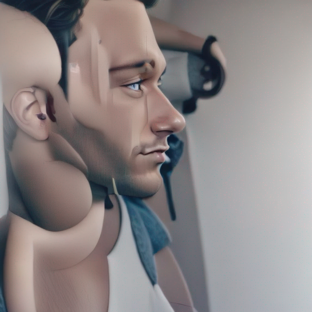 A photo of <s0><s1> a man with curly hair and a white tank top