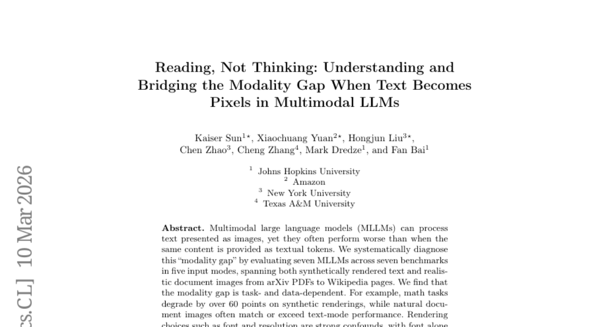 Reading, Not Thinking: Understanding and Bridging the Modality Gap When Text Becomes Pixels in Multimodal LLMs