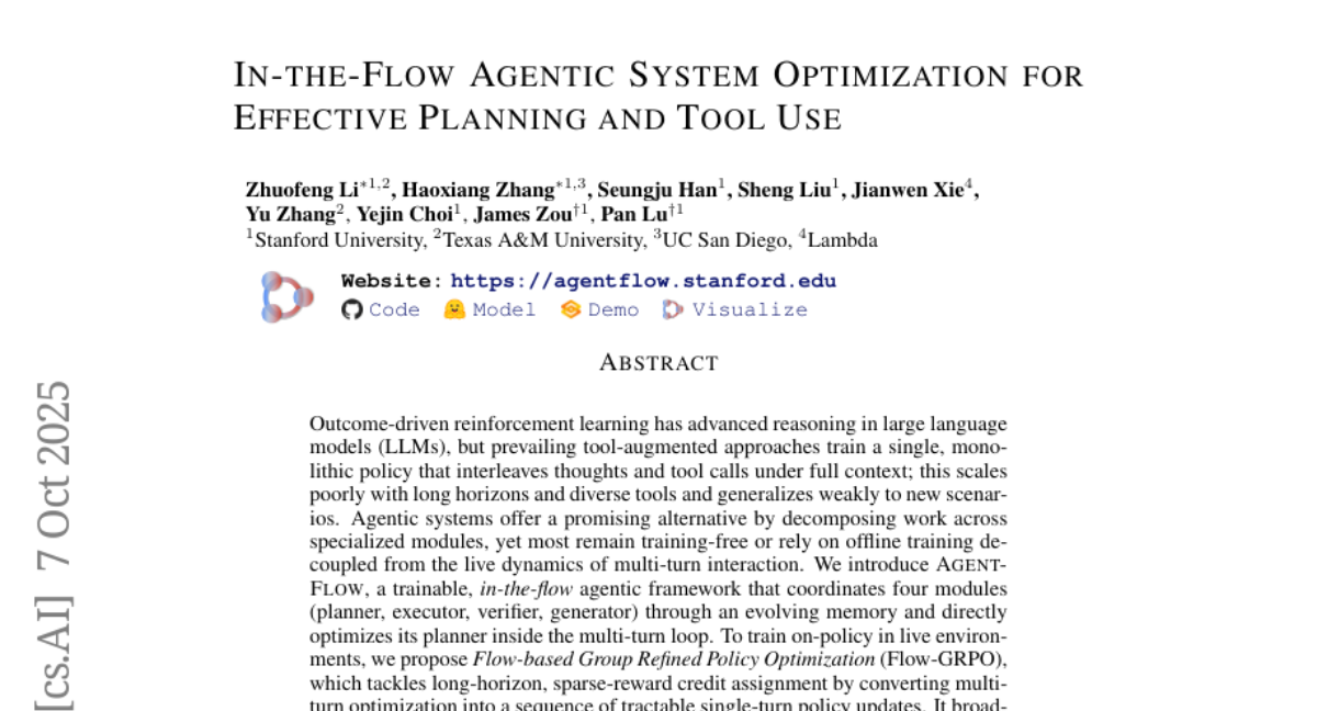 In-the-Flow Agentic System Optimization for Effective Planning and Tool Use