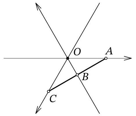 "<think>\nOkay, so I need to find the perimeter of triangle AKM in triangle ABC where AC is 1 unit, AB is 2 units, and O is the incenter. There's a segment through O that's parallel to BC intersecting AC at K and AB at M. Hmm, let me start by drawing a rough sketch in my mind. Triangle ABC with AC=1, AB=2. Wait, but what about BC? They don't give the length of BC. Hmm, maybe I need to find that first? Or maybe there's another way. Since O is the incenter, maybe I can use some properties of angle bisectors or the inradius?\n\nAlso, the segment through O is parallel to BC, so triangle AKM might be similar to triangle ABC? Because if a line parallel to one side of a triangle intersects the other two sides, then it creates a similar triangle. So if KM is parallel to BC, then triangle AKM is similar to triangle ABC. If that's the case, the ratio of their sides would be the same, and maybe the perimeter would be scaled by that ratio. But wait, perimeter of AKM would be the sum of AK, KM, and AM. But since AKM is similar to ABC, the ratio would be the same for all sides. But how do I find the ratio?\n\nBut wait, the segment passes through the incenter O. So the ratio might be related to the position of the incenter. The incenter is located at the intersection of the angle bisectors. Maybe I need to find the coordinates of O first, then find the equation of the line through O parallel to BC, find where it intersects AC and AB, then compute the lengths AK, KM, and AM?\n\nCoordinate geometry might be a good approach here. Let me set up a coordinate system. Let's place point A at the origin (0,0) for simplicity. Let’s let AC be along the x-axis, so point C is at (1,0). Then AB is 2 units long. If AB is from point A (0,0) to point B, but where is point B? Wait, AC is 1, AB is 2. So triangle ABC has sides AC=1, AB=2, but BC is unknown. Maybe I need to assign coordinates to B such that AB=2. Let's assume point B is at (0, 2), but then AC is from (0,0) to (1,0), and AB is from (0,0) to (0,2). Then BC would be from (0,2) to (1,0), which has length sqrt(1^2 + 2^2) = sqrt(5). But is that the case? Wait, but maybe I should not assume coordinates. Let me confirm.\n\nWait, triangle ABC has sides AC=1, AB=2. But the problem doesn't specify BC, so maybe it's variable? But maybe we can find BC using the angle bisectors or inradius. Hmm, not sure. Alternatively, maybe using the Law of Cosines if we can find angles? Wait, but without knowing any angles, that might be tricky. Alternatively, maybe the inradius formula. The inradius r is given by area divided by semiperimeter. But if I can find the inradius and then use coordinates, maybe that will help.\n\nWait, but maybe coordinate geometry is the way to go here. Let me try to set up coordinates with point A at (0,0), point C at (1,0), and point B somewhere in the plane. AB is 2 units, so point B must be at a distance of 2 from A (0,0). Let's assume coordinates for B as (0, b) so that AB is vertical. Then AB length is sqrt((0-0)^2 + (b-0)^2) = |b| = 2, so b=2. Therefore, point B is at (0,2). Then BC is the distance from (0,2) to (1,0), which is sqrt((1-0)^2 + (0-2)^2) = sqrt(1 + 4) = sqrt(5). So BC is sqrt(5). Then triangle ABC has sides AB=2, AC=1, BC=sqrt(5). Then the semiperimeter s is (2 + 1 + sqrt(5))/2 = (3 + sqrt(5))/2. The area can be calculated using coordinates. The area of triangle ABC is 1/2 * base * height. If we take AC as the base, length 1, then the height is the y-coordinate of point B, which is 2. So area is 1/2 * 1 * 2 = 1. Alternatively, using coordinates, the area is |(0*(2 - 0) + 0*(0 - 0) + 1*(0 - 2))/2| = |0 + 0 -2|/2 = 1. Yeah, area is 1. Then inradius r = area / semiperimeter = 1 / [(3 + sqrt(5))/2] = 2 / (3 + sqrt(5)). Rationalizing the denominator: multiply numerator and denominator by (3 - sqrt(5)), we get 2*(3 - sqrt(5)) / (9 - 5) = 2*(3 - sqrt(5))/4 = (3 - sqrt(5))/2. So the inradius r is (3 - sqrt(5))/2. So the inradius is located at a distance r from each side.\n\nBut maybe I need coordinates of the incenter O. The incenter coordinates can be found using the formula weighted average of the vertices' coordinates. The formula is ( (a*A_x + b*B_x + c*C_x)/ (a + b + c), (a*A_y + b*B_y + c*C_y)/ (a + b + c) ), where a, b, c are the lengths of the sides opposite to vertices A, B, C. Wait, in triangle ABC, the sides opposite to A, B, C are BC, AC, AB, respectively. So in our case, side a (opposite A) is BC = sqrt(5), side b (opposite B) is AC = 1, side c (opposite C) is AB = 2. Therefore, the coordinates of the incenter O would be:\n\nO_x = (a*A_x + b*B_x + c*C_x)/(a + b + c) = (sqrt(5)*0 + 1*0 + 2*1)/(sqrt(5) + 1 + 2) = (0 + 0 + 2)/(3 + sqrt(5)) = 2/(3 + sqrt(5))\n\nSimilarly, O_y = (sqrt(5)*0 + 1*2 + 2*0)/(3 + sqrt(5)) = (0 + 2 + 0)/(3 + sqrt(5)) = 2/(3 + sqrt(5))\n\nSo the coordinates of O are (2/(3 + sqrt(5)), 2/(3 + sqrt(5)) )\n\nSimplify denominators by rationalizing:\n\nMultiply numerator and denominator by (3 - sqrt(5)):\n\nO_x = 2*(3 - sqrt(5)) / [ (3 + sqrt(5))(3 - sqrt(5)) ] = 2*(3 - sqrt(5))/ (9 -5) ) = 2*(3 - sqrt(5))/4 = (3 - sqrt(5))/2\n\nSimilarly, O_y is the same: (3 - sqrt(5))/2\n\nWait, O_x and O_y are both (3 - sqrt(5))/2. So the incenter O is at ((3 - sqrt(5))/2, (3 - sqrt(5))/2 )\n\nWait, but let's confirm that. The formula says ( (a*A_x + b*B_x + c*C_x )/(a + b + c), ... )\n\nWait, in our coordinate system:\n\nA is (0,0), B is (0,2), C is (1,0)\n\nSide a (opposite A) is BC = sqrt( (1-0)^2 + (0 - 2)^2 ) = sqrt(1 + 4) = sqrt(5)\n\nSide b (opposite B) is AC = 1\n\nSide c (opposite C) is AB = 2\n\nTherefore, O_x = (a*A_x + b*B_x + c*C_x)/(a + b + c) = (sqrt(5)*0 + 1*0 + 2*1)/(sqrt(5) + 1 + 2) = 2/(3 + sqrt(5))\n\nSimilarly, O_y = (sqrt(5)*0 + 1*2 + 2*0)/(3 + sqrt(5)) = 2/(3 + sqrt(5))\n\nSo O is at (2/(3 + sqrt(5)), 2/(3 + sqrt(5)) )\n\nWhich when rationalized is ( (3 - sqrt(5))/2, (3 - sqrt(5))/2 ). Correct.\n\nSo O is at ((3 - sqrt(5))/2, (3 - sqrt(5))/2 )\n\nNow, the segment passing through O and parallel to BC. Le