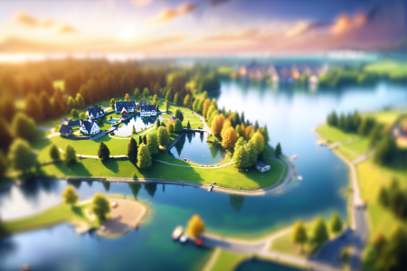 - tilt-shift, digital painting, golden hour, scenery, in a Lake