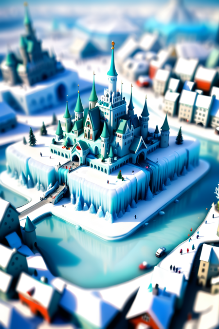 - tilt-shift, digital painting, noon, scenery, in a Surreal Ice Palace Tundra