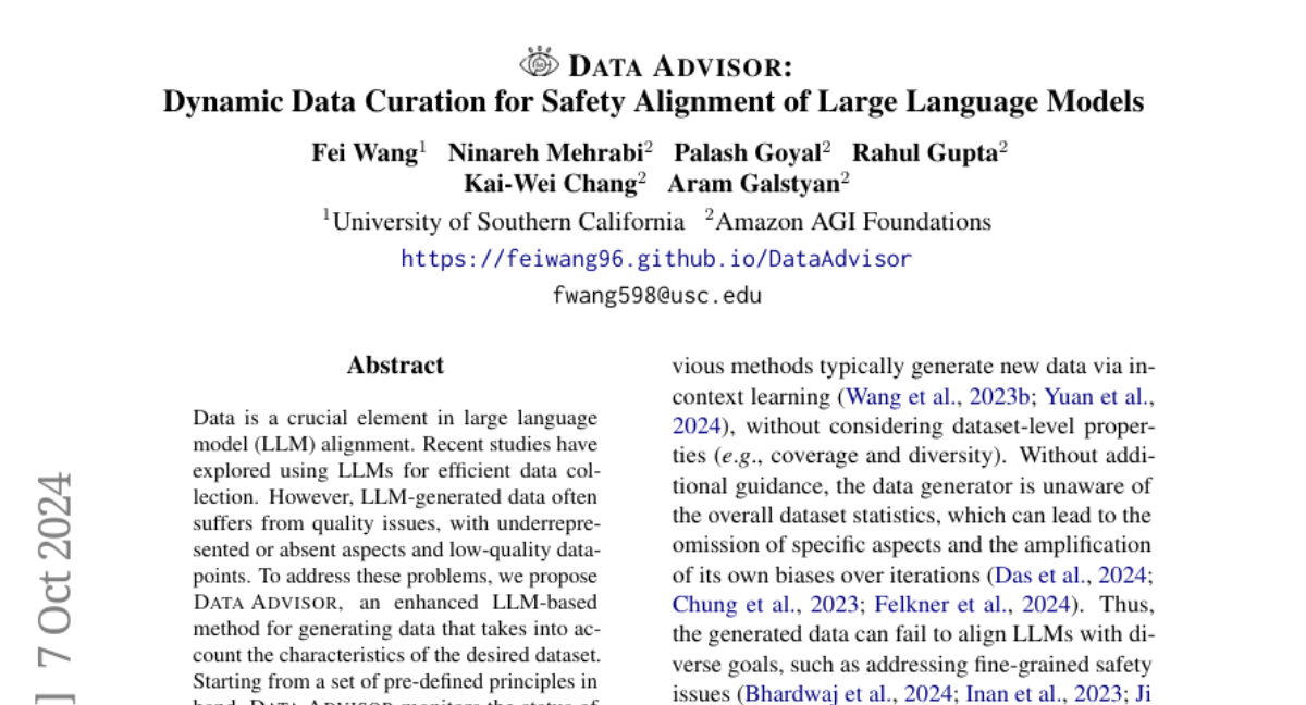 Data Advisor: Dynamic Data Curation for Safety Alignment of Large Language Models Paper • 2410.05269 • Published Oct 7, 2024 • 3
