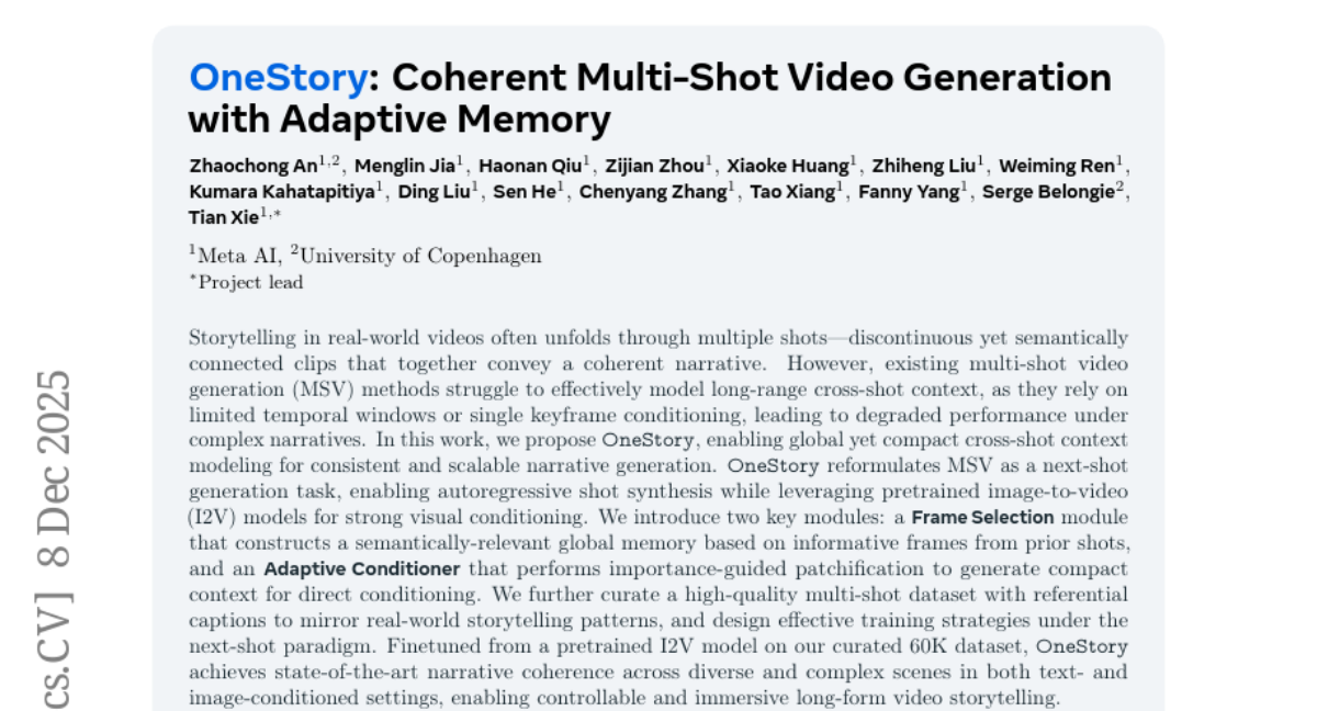 OneStory: Coherent Multi-Shot Video Generation with Adaptive Memory