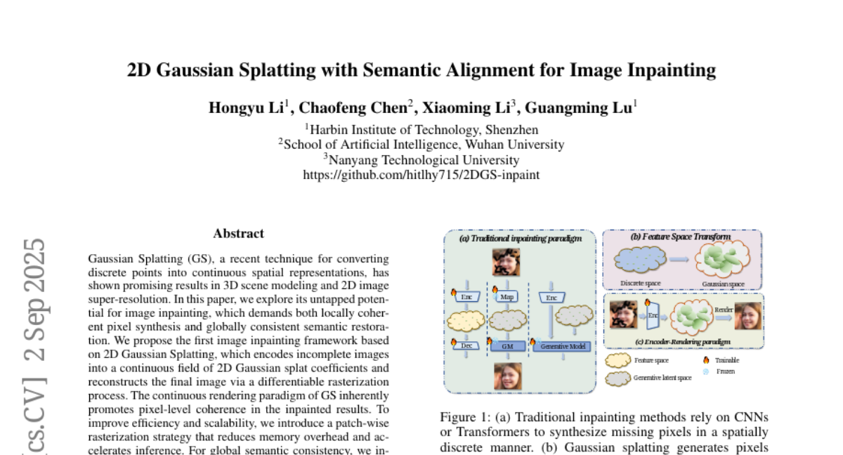 2D Gaussian Splatting with Semantic Alignment for Image Inpainting