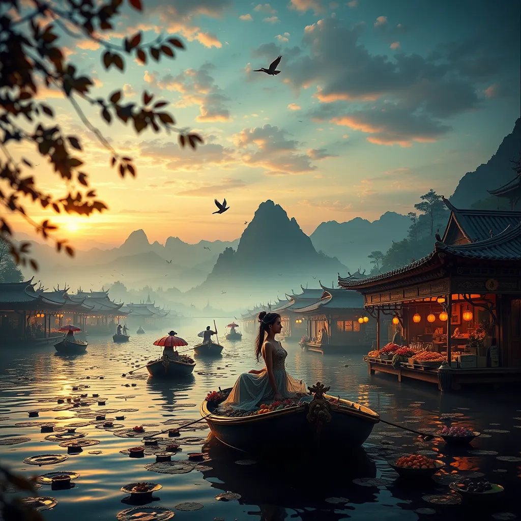 - Venus floating market at dawn, fantasy digital art, highly detailed, atmospheric lighting with film-like light leaks, impressive background, studio photo style, cinematic, intricate details.
