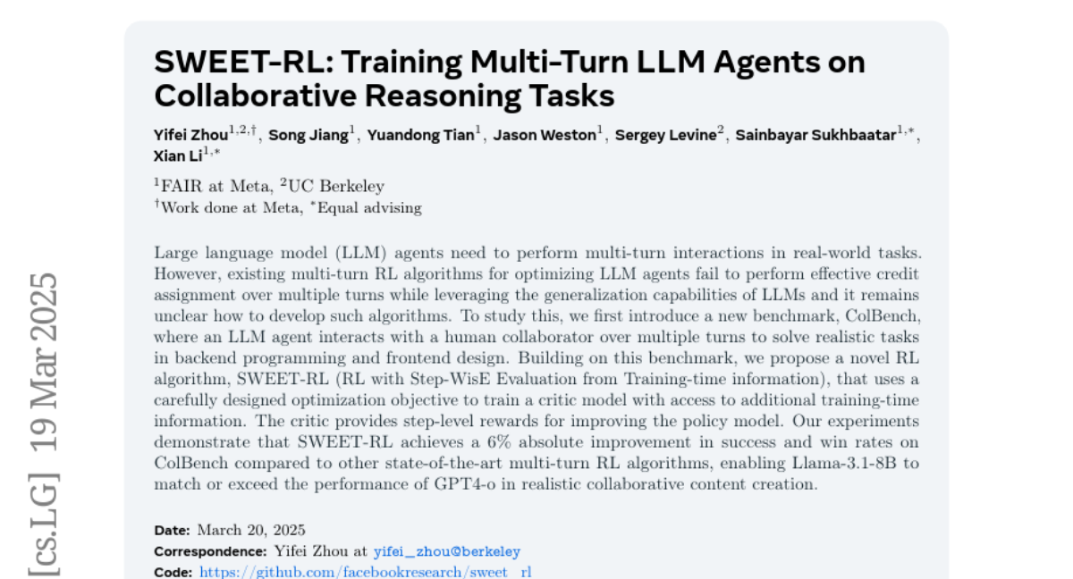 SWEET-RL: Training Multi-Turn LLM Agents on Collaborative Reasoning Tasks