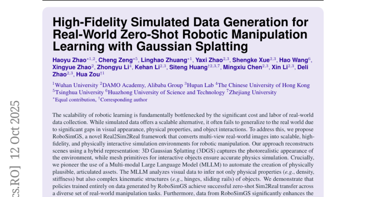 High-Fidelity Simulated Data Generation for Real-World Zero-Shot Robotic Manipulation Learning with Gaussian Splatting